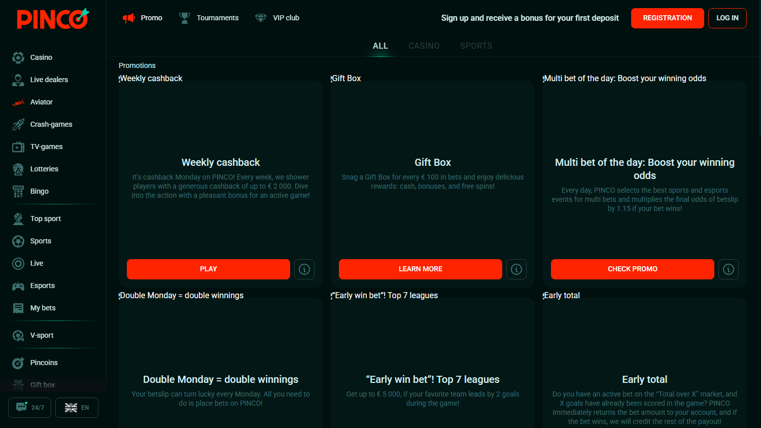 Официальный сайт онлайн-казино Pinco приглашает всех россиян посетить игровой клуб Pinco, пройти быструю регистрацию и начать играть в сотни игр уже сегодня. Войдите на сайт Pinco по действующей ссылке, чтобы делать ставки на реальные деньги и совершенно бесплатно прямо сейчас